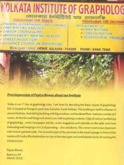 I was a student of this institution..I simply love this institution and the way sir used to teach and guide us Graphology is a very interesting subject. I enjoyed it thoroughly and it changed my life and my way of thinking. Thanks a lot to Sir Mr. Mohan Bose